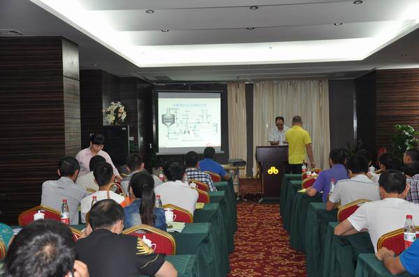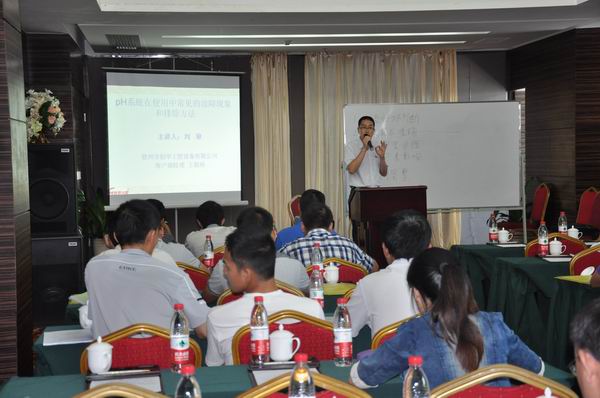 這次培訓(xùn)主要以創(chuàng)華工控pH自控系統(tǒng)系列產(chǎn)品為主,結(jié)合生產(chǎn)工藝,從理論到實際、系統(tǒng)結(jié)構(gòu)圖到實物,圍繞如何更好操作和維護設(shè)備展開講解,主要內(nèi)容有《玻璃電極的使用和維護》、《pH自控系統(tǒng)電路原理分析》、《pH自控系統(tǒng)故障分析和排除》等。培訓(xùn)還邀請了著名制糖專家—廣西大學(xué)食品工程學(xué)院周少基教授及糖廠pH自控系統(tǒng)第一人—華南理大學(xué)黃揚明博士就《蔗汁澄清與控制》和《可靠性工程與產(chǎn)品研制》等方面內(nèi)容進行了講解。